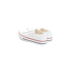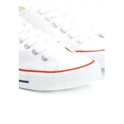 Trampki Messyphise o kultowym, klasycznym fasonie, z cholewką przed kostkę. Osadzone na płaskiej podeszwie zdobionej czarnymi lamówkami. Sznurowane, z gumowym noskiem o zaokrąglonym kształcie. Wykonane z materiału tekstylnego. Niskie trampki to ponadczasowa perełka, której nie może zabraknąć w Twojej garderobie.