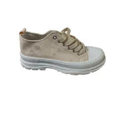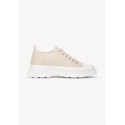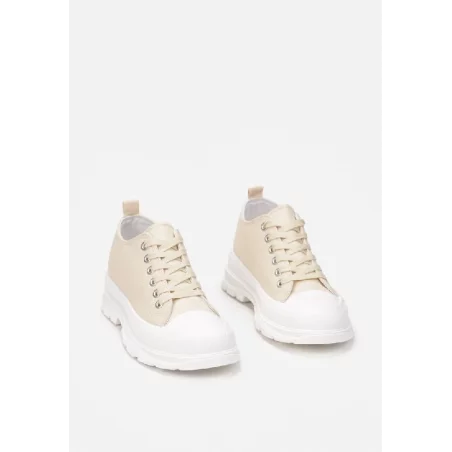 Trampki Penthamene z niską cholewką sięgającą przed kostkę, zdobiona delikatnymi przeszyciami. Wykonane z materiału tekstylnego. Osadzone na grubej platformie ze stylowym bieżnikiem. Nosek i otok podeszwy dodatkowo wzmocniony gumowym tworzywem. Sznurowane. Trampki Penthamene będą świetnym dodatkiem do casualowych looków w miejskim stylu!