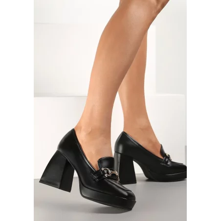Półbuty Dinon z niską cholewką przed kostkę oraz kwadratowym noskiem. Na wysokości śródstopia zdobione metalową klamerką. Po bokach delikatne wycięcia. Wsuwane, osadzone na grubym, geometrycznym słupku oraz platformie. Wykonane ze skóry ekologicznej, wraz z wkładką. Doda elegancji i kobiecości Twoim outfitom! Zalecamy wybór rozmiaru o 1 większy - rozmiarówka zaniżona.