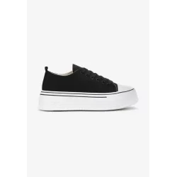 Trampki Ranya o klasycznej i jednocześnie unowocześnionej formie. Osadzone na wysokiej, gumowej platformie, która jest hitem w tym sezonie. Cholewka sięgająca kostki, stworzona z solidnego materiału tekstylnego. W środku wyściółka, jak i miękka wkładka z materiału. Okrągły nosek wzmocniona gumową wstawką. System sznurowania pozwoli na indywidualne dopasowanie do stopu. Te ponadczasowe trampki to kwintesencja nowoczesnego designu. W duecie w sportowym secie lub ze zwiewną sukienką będą odlotowo!