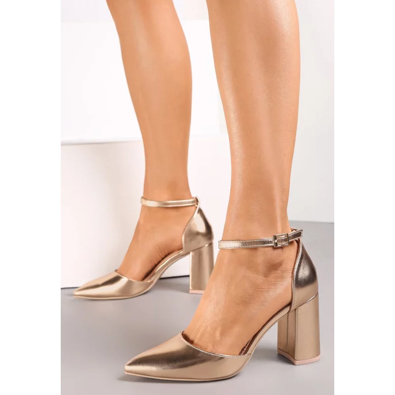Czółenka Ewwa wykonane z lakierowanej ekoskóry. Osadzone na obcasie typu słupek. Wokół kostki umieszczony cienki pasek ze sprzączką. Modne czółenka Ewwa doskonale dopełnią każdą stylizację.