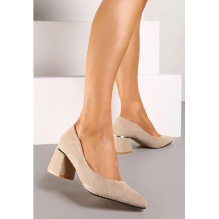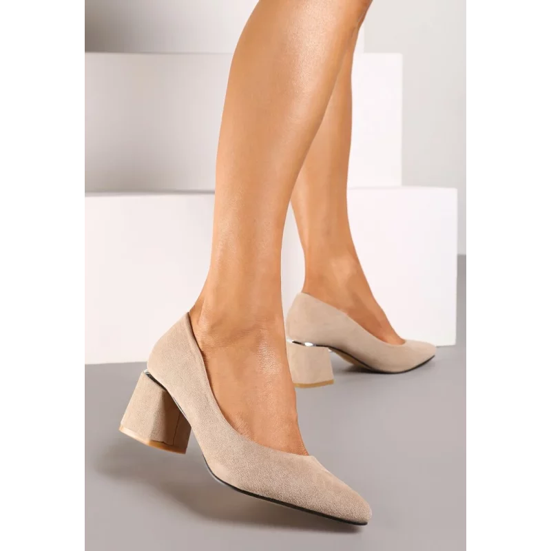 BEŻOWE CZÓŁENKA NA NISKIM SŁUPKU Z METALOWĄ WSTAWKĄ ROZMIAR 41