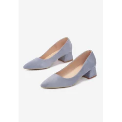 Czółenka Kallomela na stożkowym obcasie, wykonane z ekozamszu w jednolitym kolorze. Ze szpiczastym, eleganckim noskiem. Wkładka z ekoskóry, znacząco zwiększająca komfort noszenia. Dodadzą Ci mnóstwa kobiecości i optycznie wysmuklą nogi. Noś je w zestawie z sukienkami mini typu kopertowe lub bodycon! Najlepiej leżą na wąskiej stopie.