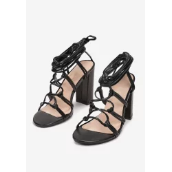 Sandały Geana na obcasie z cholewką z modnych rzemyków, tworzących ciekawą kompozycję wokół stopy. Połączone pętelkami, wiązane wokół kostki.