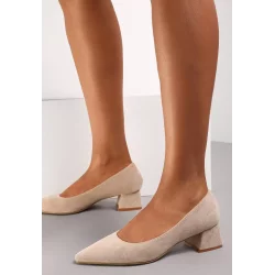 Czółenka Kallomela na stożkowym obcasie, wykonane z ekozamszu w jednolitym kolorze. Ze szpiczastym, eleganckim noskiem. Wkładka z ekoskóry, znacząco zwiększająca komfort noszenia. Dodadzą Ci mnóstwa kobiecości i optycznie wysmuklą nogi. Noś je w zestawie z sukienkami mini typu kopertowe lub bodycon! Najlepiej leżą na wąskiej stopie.