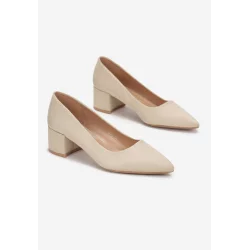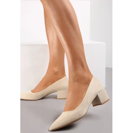 Czółenka Natti z ekozamszu, na niewysokim, geometrycznym słupku. Wkładka z ekoskóry. Spiczaste, modne noski. Model wsuwany, w jednolitym kolorze. Buty najlepiej leżą na wąskiej stopie. Poszukujesz idealnych, pasujących na różne okazje eleganckich butów? Te czółenka spełnią Twoje oczekiwania - będą pasować zarówno do spodni w kant i