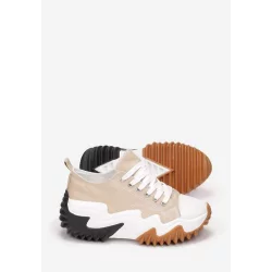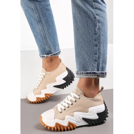 Sneakersy Zegrer wykonane z materiału tekstylnego, z gumową wstawką na nosku. Sznurowane. Osadzone na charakternej, grubej podeszwie z wypustkami i ciekawym żłobieniu. Cholewka sięga przed kostkę, dekorowana delikatnymi przeszyciami. Sneakersy Zegrer zachwycają nietuzinkowym, nowoczesnym designem, który podkreśli miejski, casualowy look.