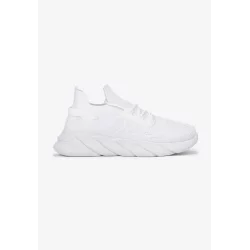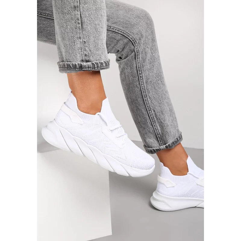 Buty Sportowe Semano z elastyczną cholewką z elastycznego materiału. Sneakersy na grubej podeszwie w odcieniu cholewki, zdobionej tłoczeniem. Zaokrąglony nosek. Z przodu elastyczne sznurowanie, buty wsuwane. Udekorowane perforacją oraz wstawką na zapiętku. Wykonane z materiału. Całość w jednolitej kolorystyce, dzięki czemu dopasujesz je do każdej sportowej lub streetwearowej stylizacji.