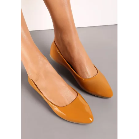 Balerinki Sanes na płaskiej podeszwie, ze smukłym, szpiczastym noskiem. Wygodnie wsuwane. Model wykonany z pięknie lakierowanej ekoskóry. Idealnie sprawdzą się na wiele okazji!