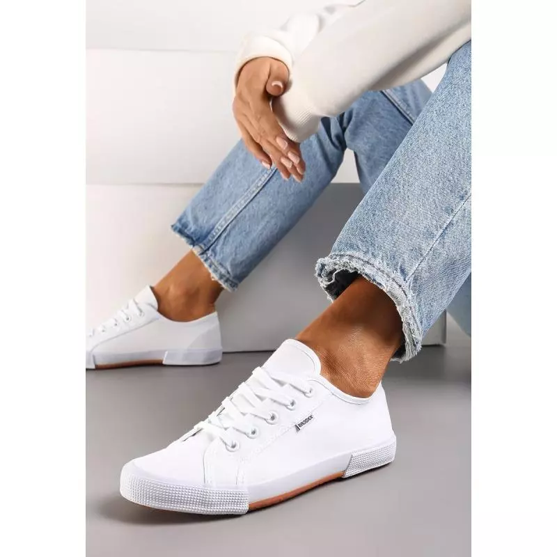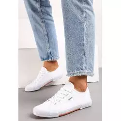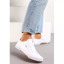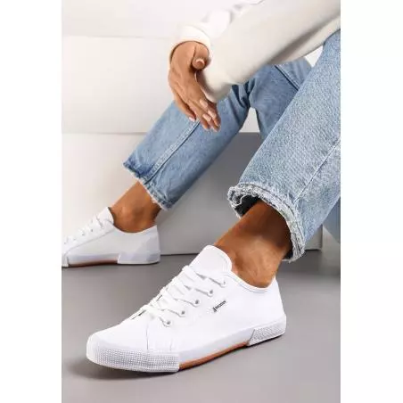 Tenisówki Rhaerose z niską cholewką z okrągłym noskiem, niewielką naszywką i wiązaniem. Na kauczukowej podeszwie ze wstawką w innym kolorze. Z tłoczonymi wstawkami przy nosku i pięcie. Wykonane z materiału tekstylnego. Sportowe tenisówki zestawisz i z dresami, i jeansami!