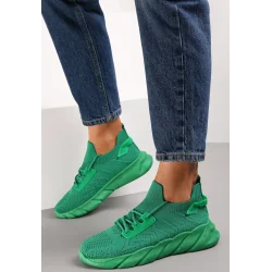 Buty Sportowe Semano z elastyczną cholewką z elastycznego materiału. Sneakersy na grubej podeszwie w odcieniu cholewki, zdobionej tłoczeniem. Zaokrąglony nosek. Z przodu elastyczne sznurowanie, buty wsuwane. Udekorowane perforacją oraz wstawką na zapiętku. Wykonane z materiału. Całość w jednolitej kolorystyce, dzięki czemu dopasujesz je do