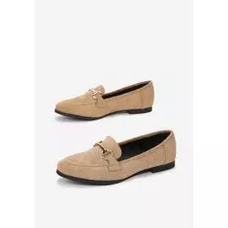 Mokasyny Fair City wsuwane, z klasyczną cholewką ozdobioną przeszyciami oraz biżuteryjnym elementem na śródstopiu. Na płaskim, kwadratowym obcasie. Z zaokrąglonym, smukłym noskiem. Wykonane z ekozamszu. Mokasyny Fair City pokochają zwolenniczki łączenia casualowego i eleganckiego stylu!