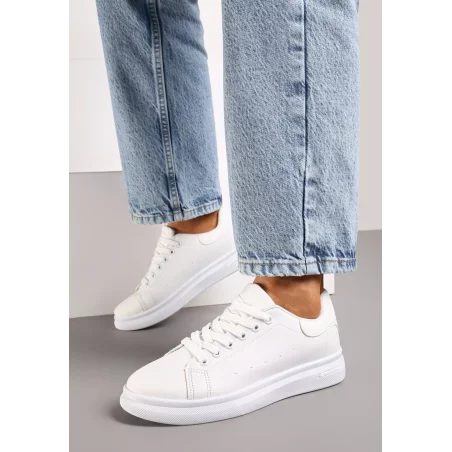 BIAŁE WIĄZANE SNEAKERSY NA PŁASKIEJ PODESZWIE ROZMIAR 40