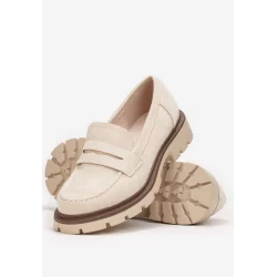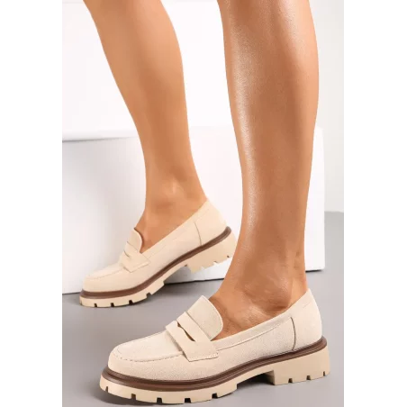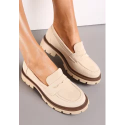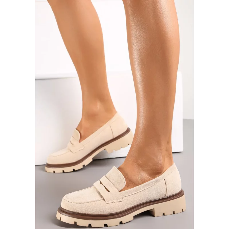 Mokasyny Tanesa wykonane z ekozamszu. Osadzone na grubej podeszwie z bieżnikiem. Model wsuwany z okrągłym noskiem i przeszyciami. Uniwersalne mokasyny Tanesa będą doskonale pasować zarówno do jeasnów, jak i sukienek.