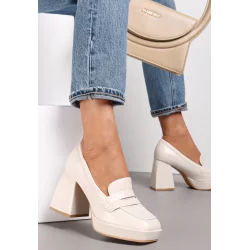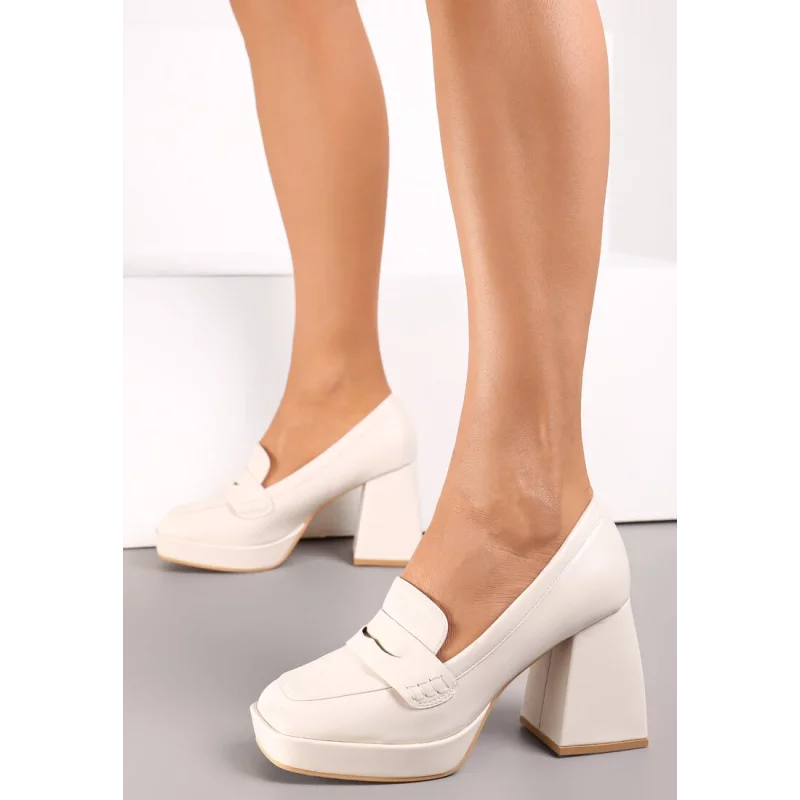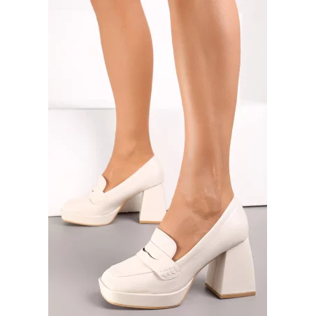 Półbuty Lanea wykonane w całości z ekoskóry, o gładkim i jednolitym zdobieniu. Osadzone na platformie i geometrycznym słupku. Nosek kwadratowy. Przód dekorowany paskiem oraz przeszyciami w dopasowanym kolorze. Wygodnie wsuwane. Ten stylowy model świetnie połączy się np. w outficie ze sweterkową sukienką midi!