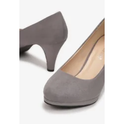 Czółenka Tafenne na stożkowym obcasie, ze smukłym, zaokrąglonym noskiem. Wygodnie wsuwane. Wykonane z gładkiego ekozamszu. Wewnątrz wkładka z ekoskóry. Przy zakupie rekomendujemy wybór rozmiaru o 1 większy.