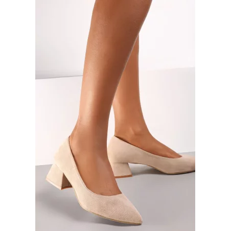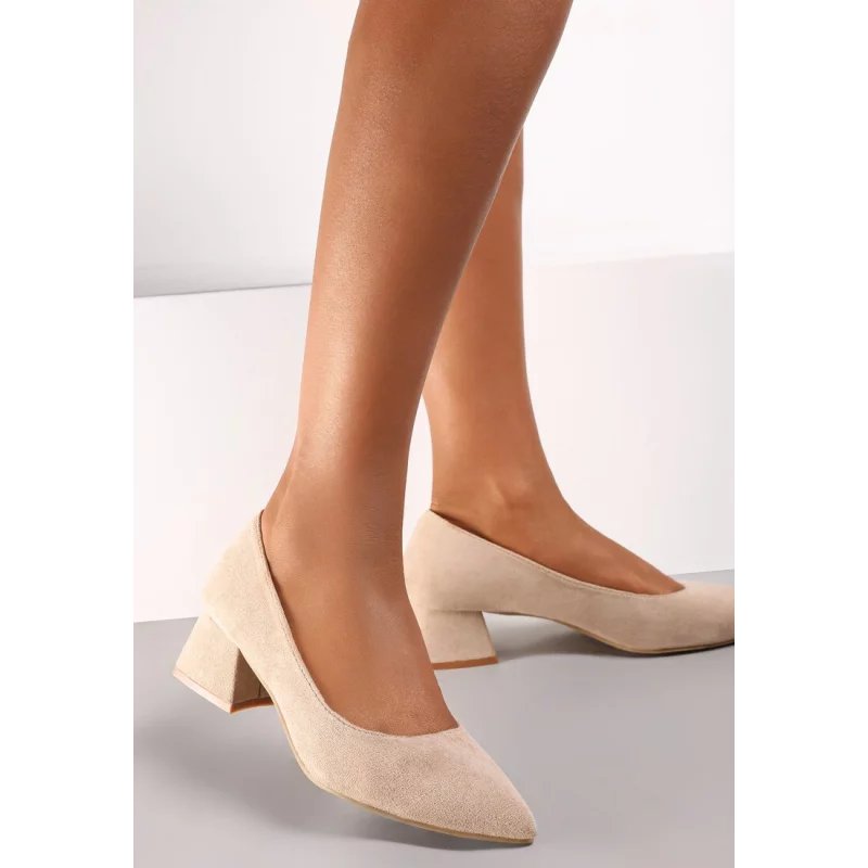 Czółenka Kallomela na stożkowym obcasie, wykonane z ekozamszu w jednolitym kolorze. Ze szpiczastym, eleganckim noskiem. Wkładka z ekoskóry, znacząco zwiększająca komfort noszenia. Dodadzą Ci mnóstwa kobiecości i optycznie wysmuklą nogi. Noś je w zestawie z sukienkami mini typu kopertowe lub bodycon! Najlepiej leżą na wąskiej stopie.