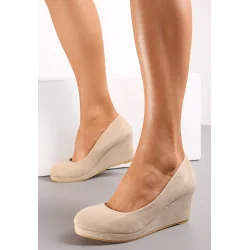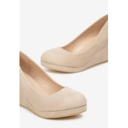 BEŻOWE GŁADKIE CZÓŁENKA NA KOTURNIE Z IMITACJI ZAMSZU ROZMIAR 40