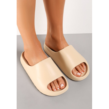 Klapki Hippyle o kultowym fasonie chunky. W całości wykonane z piankowego tworzywa, zachowane w jednolitej kolorystyce. Gładkie. Szeroki pasek, który podtrzymuje stopę. Otwarty, zaokrąglony nosek. Gumowe klapki chunky to hit sezonu, którego nie może zabraknąć w Twojej garderobie.