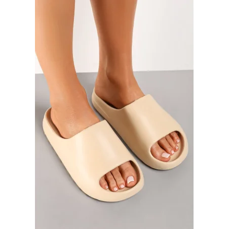 Klapki Hippyle o kultowym fasonie chunky. W całości wykonane z piankowego tworzywa, zachowane w jednolitej kolorystyce. Gładkie. Szeroki pasek, który podtrzymuje stopę. Otwarty, zaokrąglony nosek. Gumowe klapki chunky to hit sezonu, którego nie może zabraknąć w Twojej garderobie.