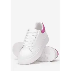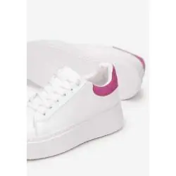 BIAŁO-FUKSJOWE SNEAKERSY Z KOLOROWYM ZAPIĘTKIEM NA PLATFORMIE ROZMIAR 39