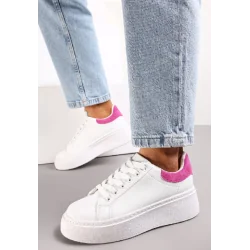 SNEAKERSY Z KOLOROWYM ZAPIĘTKIEM NA PLATFORMIE BIAŁO-FUKSJOWE ROZMIAR 40 II GATUNEK