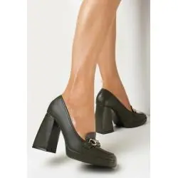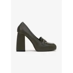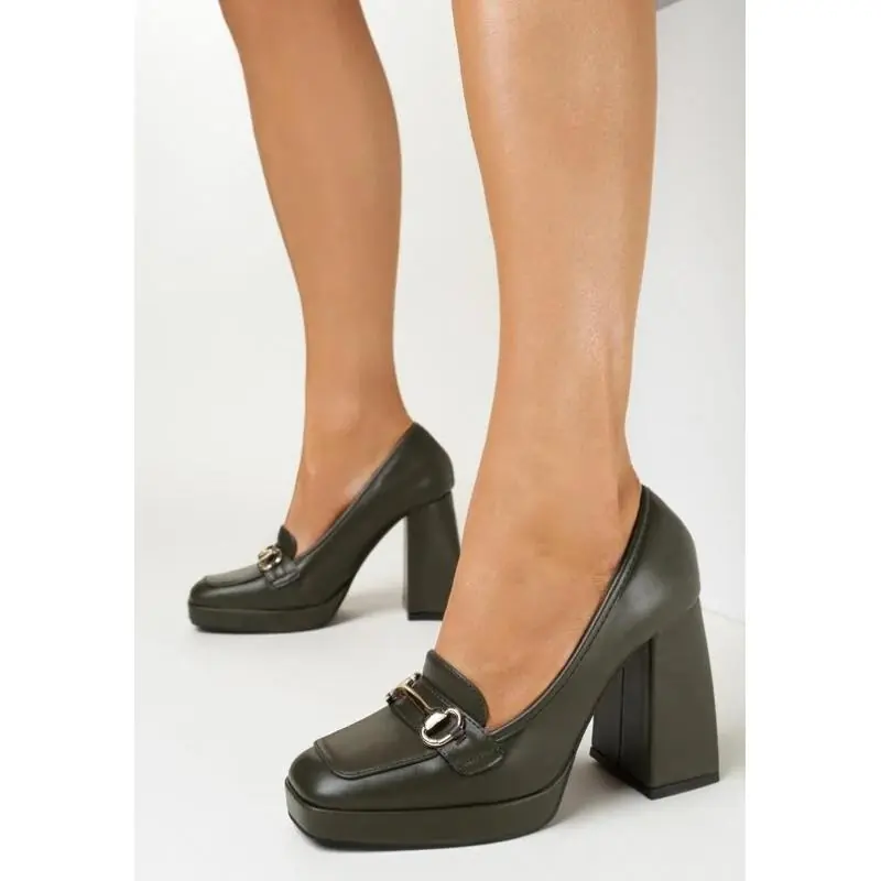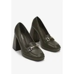 ZIELONE CZÓŁENKA NA SŁUPKU I PLATFORMIE Z METALICZNĄ KLAMERKĄ ROZMIAR 36