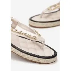 BEŻOWE SANDAŁY JAPONKI NA PLECIONEJ PODESZWIE Z PASKIEM Z ŁAŃCUSZKIEM ROZMIAR 37