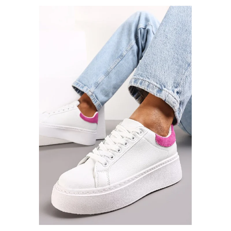 SNEAKERSY Z KOLOROWYM ZAPIĘTKIEM NA PLATFORMIE BIAŁO-FUKSJOWE ROZMIAR 40 II GATUNEK