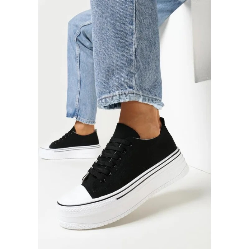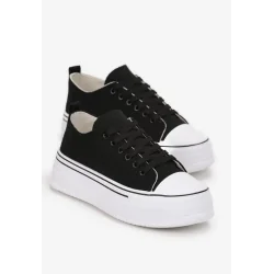 Trampki Ranya o klasycznej i jednocześnie unowocześnionej formie. Osadzone na wysokiej, gumowej platformie, która jest hitem w tym sezonie. Cholewka sięgająca kostki, stworzona z solidnego materiału tekstylnego. W środku wyściółka, jak i miękka wkładka z materiału. Okrągły nosek wzmocniona gumową wstawką. System sznurowania pozwoli na