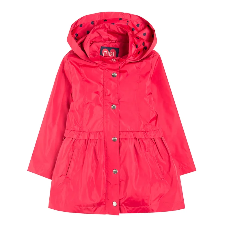 Elegancki płaszcz w kolorze soczystej czerwieni przyciąga wzrok i zachwyca głębią swego koloru! Płaszcz doskonały na co dzień oraz na wyjątkowe wyjścia. Każda dziewczynka wyglądać w nim będzie modnie i stylowo. Płaszcz posiada wodoodporną powłokę oraz kaptur zapewniający doskonałą ochronę przed wiatrem i wilgocią.