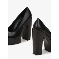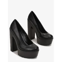 Czółenka Raki na wysokim słupku i platformie z delikatnymi wypustkami. Model wykonany z ekoskóry, wraz z komfortową wkładką. Okrągły nosek. Wsuwane. Wąskie - najlepsze na smukłą stopę.