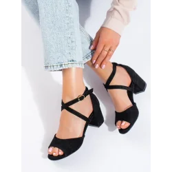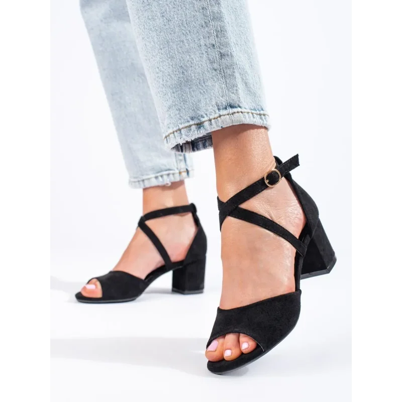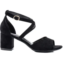 Sandały na Słupku Halcione posiadają zapięcie w postaci sprzączki na kostce. Element ozdobny stanowią skrzyżowane paski z imitacji zamszu. Uzupełnią Twoją garderobę o klasykę z nutą ekstrawagancji.