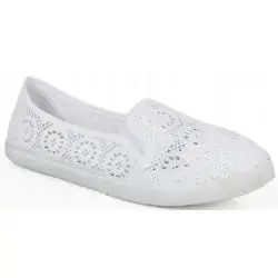 Te białe tenisówki wyróżniają się nietypowym designem, który sprawia, że są idealnym wyborem dla kobiet ceniących sobie oryginalność i wyrafinowany styl. Koronkowy materiał dodaje im lekkości i delikatności, dzięki czemu świetnie będą komponować się zarówno z casualowymi, jak i bardziej eleganckimi stylizacjami. Te białe koronkowe tenisówki to doskonały wybór dla każdej kobiety, która pragnie połączyć sportowy styl z kobiecą elegancją. Bez względu na okazję, będą one niezawodnym i stylowym dodatkiem do każdej garderoby.