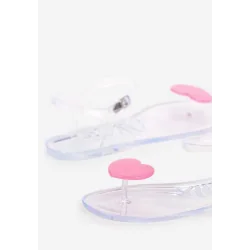 Wybierz transparentne sandały o kroju japonek z dekoracyjnym serduszkiem i zabierz je na basen lub plażę!