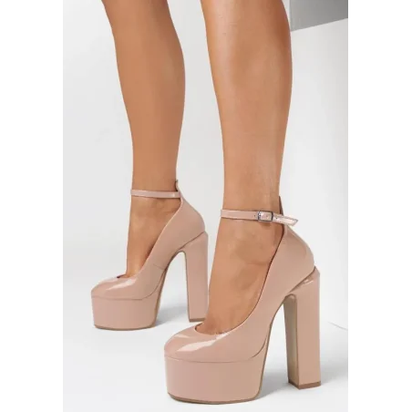 Czółenka Lydie wykonane z pięknie lakierowanej ekoskóry. Osadzone na bardzo wysokim, słupkowym obcasie oraz platformie, która zapewnia dodatkową stabilizację. Palce zabudowane, ze smukłym noskiem o zaokrąglonym kształcie. Dodatkowo wokół kostki zapinane na regulowaną sprzączkę. Czółenka Lydie to coś w sam raz dla miłośniczek kobiecych i przykuwających uwagę dodatków!