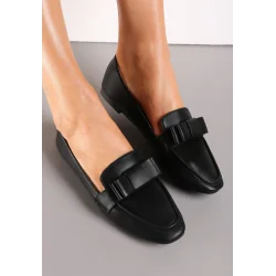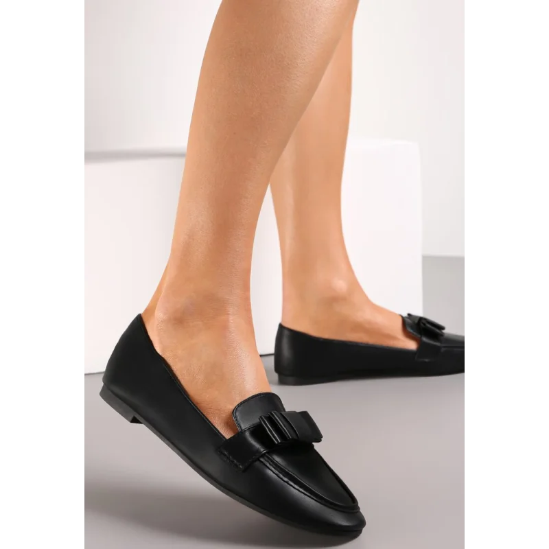 CZARNE MATOWE MOKASYNY Z IMITACJI SKÓRY Z KOKARDKĄ ROZMIAR 37