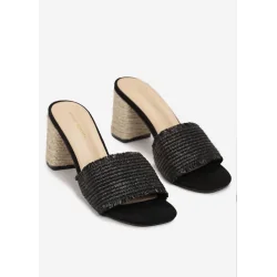 CZARNE KLAPKI Z OZDOBNEJ PLECIONKI NA SŁUPKOWYM OBCASIE ROZMIAR 38