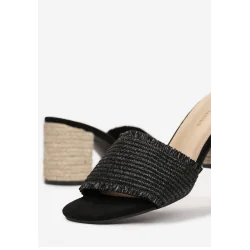 Klapki Usiana z ozdobną plecionką na obcasie i przednim pasku. Osadzone na słupkowym obcasie. Model z wkładką ze skóry ekologicznej. Dedykowane wąskim stopom. Plecione klapki Usiana sprawdzą się w stylizacjach boho.
