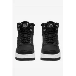 Buty damskie KAPPA VSKA007 czarne to idealne sneakersy sportowe na chłodniejsze dni. Ocieplone futerkiem wnętrze zapewnia komfort termiczny, a wytrzymała podeszwa antypoślizgowa gwarantuje stabilność podczas spacerów, treningów na świeżym powietrzu oraz codziennego użytkowania w mieście.