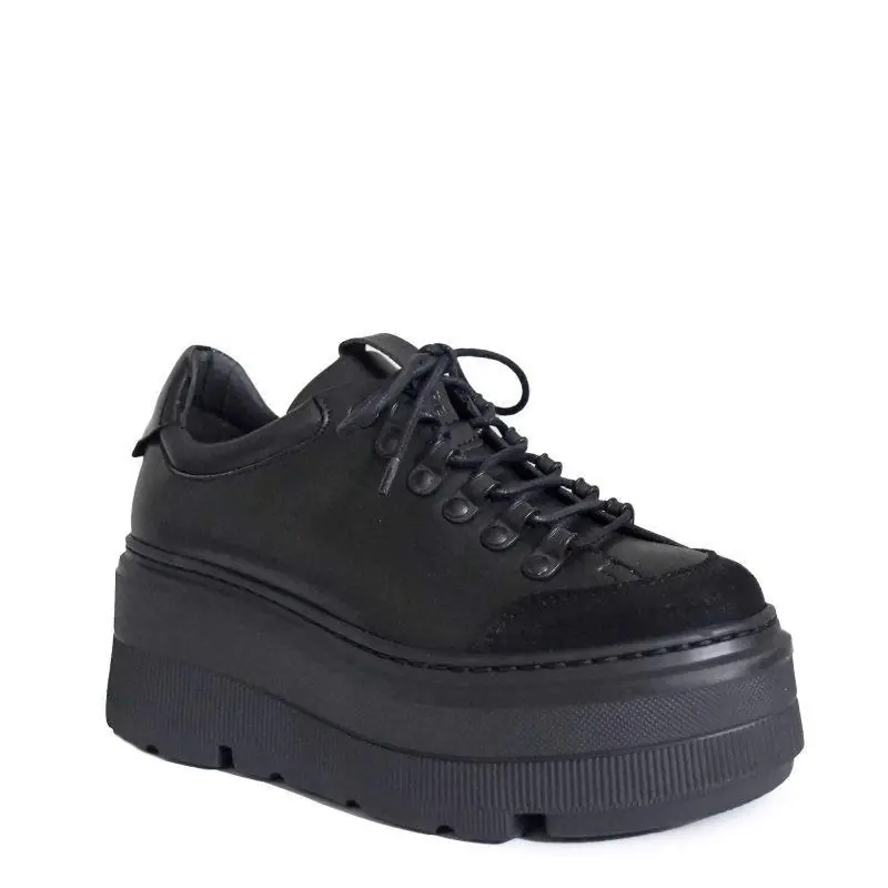 Altercore Ray Vegan Black to stylowe wegańskie trampki na platformie stworzone dla osób, które cenią nowoczesny design, wygodę oraz materiały przyjazne środowisku. Buty wykonano z wytrzymałej skóry wegańskiej, dzięki czemu są całkowicie wolne od komponentów odzwierzęcych, a jednocześnie zachowują doskonałą trwałość i estetykę. Czarna