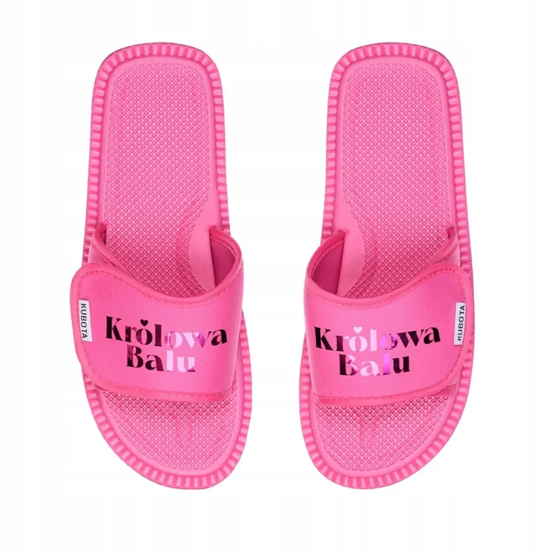 Kubota klapki damskie rozmiar 38 Królowa Balu różowe to wygodne i stylowe obuwie, które łączy komfort noszenia, lekkość oraz modny, kobiecy design. Wyrazisty różowy kolor oraz charakterystyczny napis Królowa Balu sprawiają, że model wyróżnia się i nadaje stylizacjom luźnego, wakacyjnego charakteru. To idealne klapki damskie Kubota na co dzień, do domu, na spacer i na wyjazd.