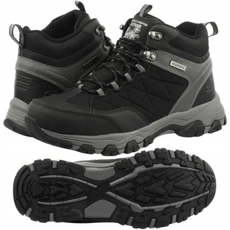 Skechers Selmen Telago 66283-BLK to męskie buty outdoorowe stworzone do wymagających warunków jesienno-zimowych. Dzięki wodoodpornej membranie Waterproof, solidnej konstrukcji i trwałej podeszwie gumowej, model ten zapewnia stabilność, pewność kroku i komfort podczas codziennego użytkowania oraz dłuższych wędrówek. To idealny wybór dla tych,
