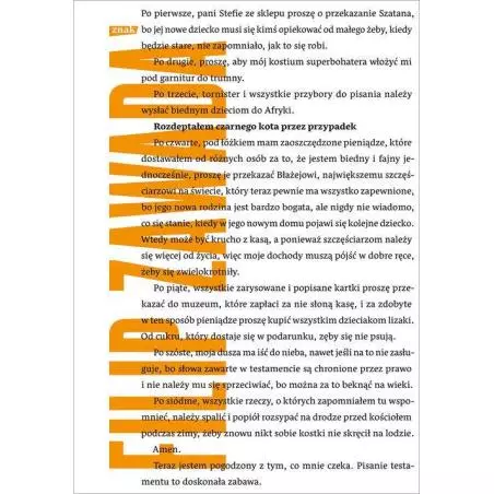 O ludziach, którzy mają dużo miłości, ale nie mają komu jej dać Na świecie pewnych jest tylko kilka rzeczy. Za wyrażanie się nie dostajesz deseru (kto by go zresztą jadł). Błażej to beksa i irytujący dureń, który gówno wie o życiu. A dorośli zajmują się samymi pierdołami, no chyba, że są kierowcami cystern. I bądź tu mądry, kiedy kot Szatan znika w tajemniczych okolicznościach, sklepikarka Stefa rodzi sobie nagle dziecko, a za zakonnicami to już w ogóle nie trafisz. Rozdeptałem czarnego kota… to historia poszukiwania swojego miejsca na Ziemi, planecie ludzi. Świeża, błyskotliwa proza, która sprawia, że zaczynasz widzieć, jak bardzo świat z twoich wyobrażeń różni się od tego, w którym żyjesz. Z każdą stroną uświadamiasz sobie, że tę książkę Filip Zawada napisał właśnie o tobie. Wszyscy mówią, że jestem znajdą, chociaż jeżeli nigdy nikt nikogo nie zgubił, to ciężko powiedzieć, że ktoś kogoś znalazł. [fragment książki] Filip Zawada – pisarz, muzyk, fotograf. Autor dwóch książek prozatorskich i sześciu tomików poezji. Nominowany do nagród literackich Gdynia i Silesius. Komponuje muzykę do filmów i sztuk teatralnych. Przez lata związany z zespołami Pustki i Indigo Tree. Obecnie gra sam, hip-hopując własne teksty.