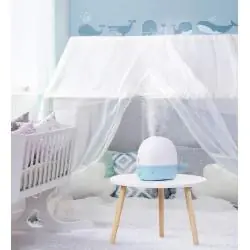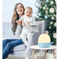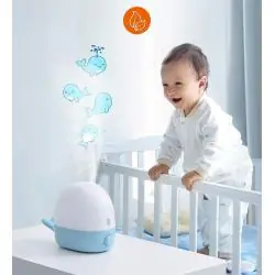 Wesoły kształt wieloryba oraz delikatne światło sprawiają, że urządzenie doskonale wkomponuje się w dziecięcy pokój. Nawilżacz jest lekki (720 g), kompaktowy i łatwy do przenoszenia, a pojemność 2,5 litra zapewnia do 30 godzin nieprzerwanej pracy.