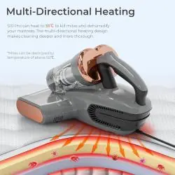 Smarock S10 Pro to wysokowydajny odkurzacz UV dla alergików, zaprojektowany do dokładnego usuwania roztoczy, kurzu, bakterii i alergenów z materacy, kanap, tapicerowanych mebli i tekstyliów. Łączy moc 500W, silne ssanie 13 kPa, technologię UV, ultradźwięki oraz podgrzewanie do 55°C, aby niszczyć aż 99,99% roztoczy i bakterii.