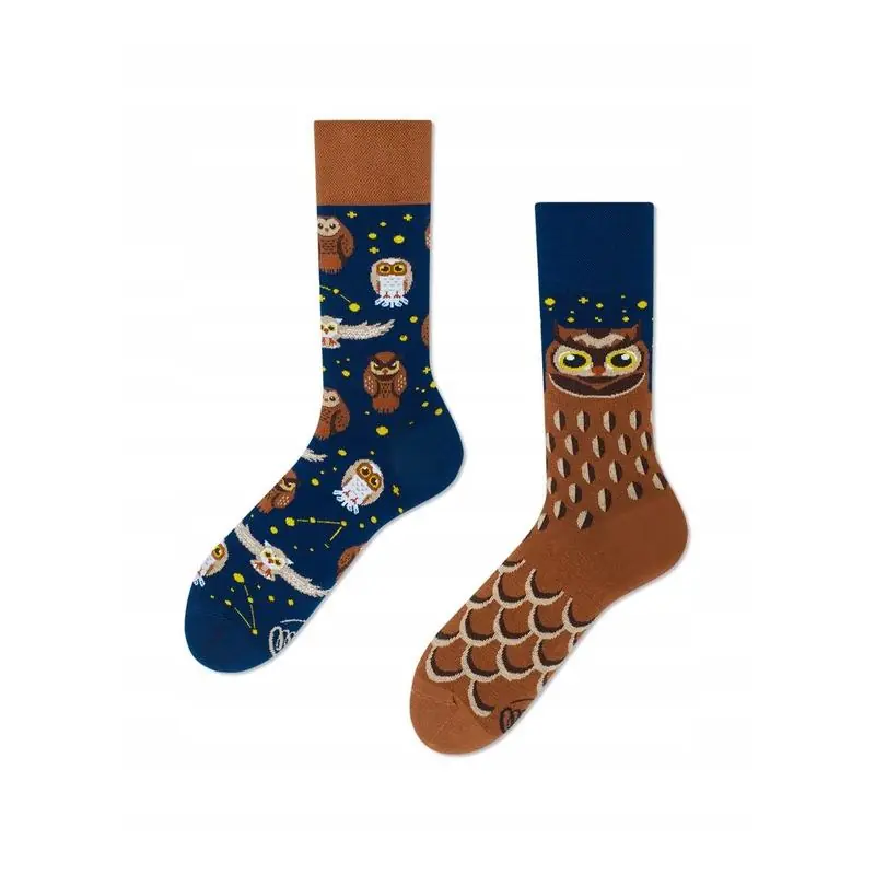 Skarpetki dla nocnych marków, którym rosną skrzydła na myśl o wieczornych eskapadach. Sowy zawsze mają oczy dookoła głowy wypatrujące kolorowych atrakcji, jednak w parze z rozrywkowym nastrojem zawsze idzie mądrość i rozsądek.