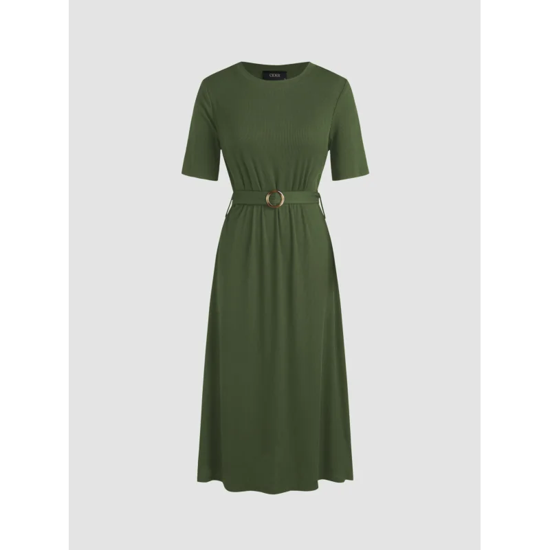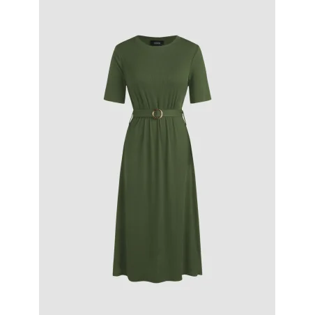 Sukienka prążkowana w oliwkowym kolorze od Cider to połączenie elegancji i komfortu. Dzięki dopasowanemu krojowi, paskowi w talii i subtelnej fakturze materiału, kreacja podkreśla sylwetkę i nadaje stylowy, nowoczesny charakter. Długość midi sprawia, że sukienka jest uniwersalna – sprawdzi się zarówno w codziennych stylizacjach, jak i na specjalne okazje.