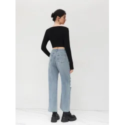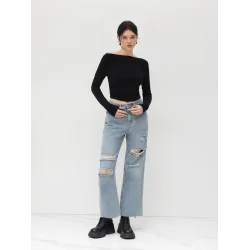 Spodnie sprawdzą się w codziennych, casualowych stylizacjach. Łącz je z T-shirtami, bluzami, swetrami i sneakersami, aby uzyskać wygodny i modny look na co dzień. Modne przetarcia dodają charakteru i nowoczesnego wykończenia każdej stylizacji.