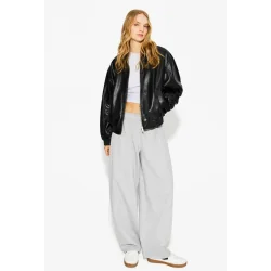 Czarna kurtka ze skóry ekologicznej Bershka w rozmiarze XS to ponadczasowy model, który łączy styl, wygodę i nowoczesne wykończenie. Klasyczna forma z wykładanym kołnierzem i metalicznym zamkiem błyskawicznym sprawia, że kurtka świetnie sprawdzi się w codziennych stylizacjach – od casualowych po bardziej rockowe. Regular Fit gwarantuje swobodne dopasowanie, a elastyczna talia podkreśla sylwetkę bez uczucia sztywności.